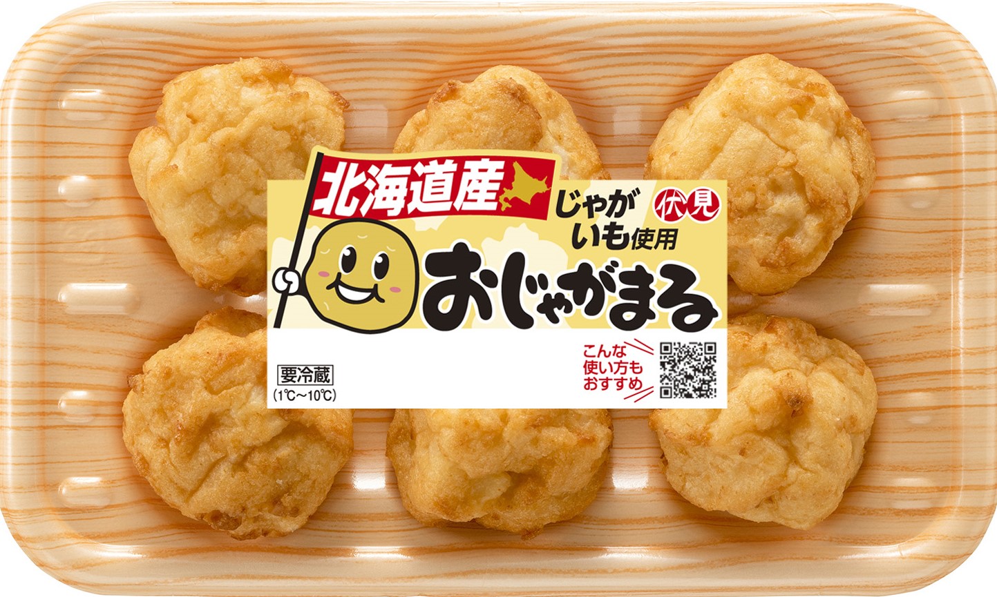 じゃがいも(北海道産)、魚肉、玉ねぎ、植物油、乾燥マッシュポテト、砂糖、でん粉、食塩、大豆たん白、発酵調味料、たん白加水分解物、魚介エキス、卵白、炒め玉ねぎ/加工でん粉、トレハロース、セルロース、調味料(アミノ酸)、pH調整剤、キシロース、焼成Ca、(一部に卵・小麦・大豆を含む)■内容量